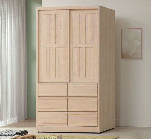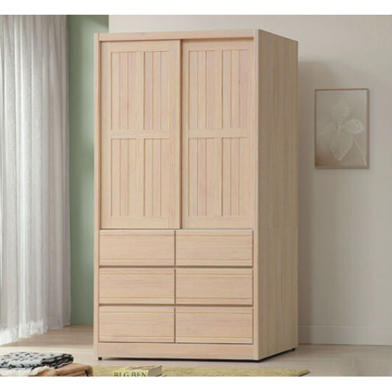 E3-1 米樂實木洗白4*7尺推門衣櫃 單吊 抽屜*6$13500