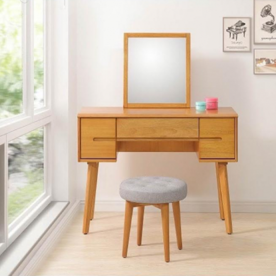 E6-4 米娜淺柚木3.3尺鏡台 含椅 抽屜*3$13700