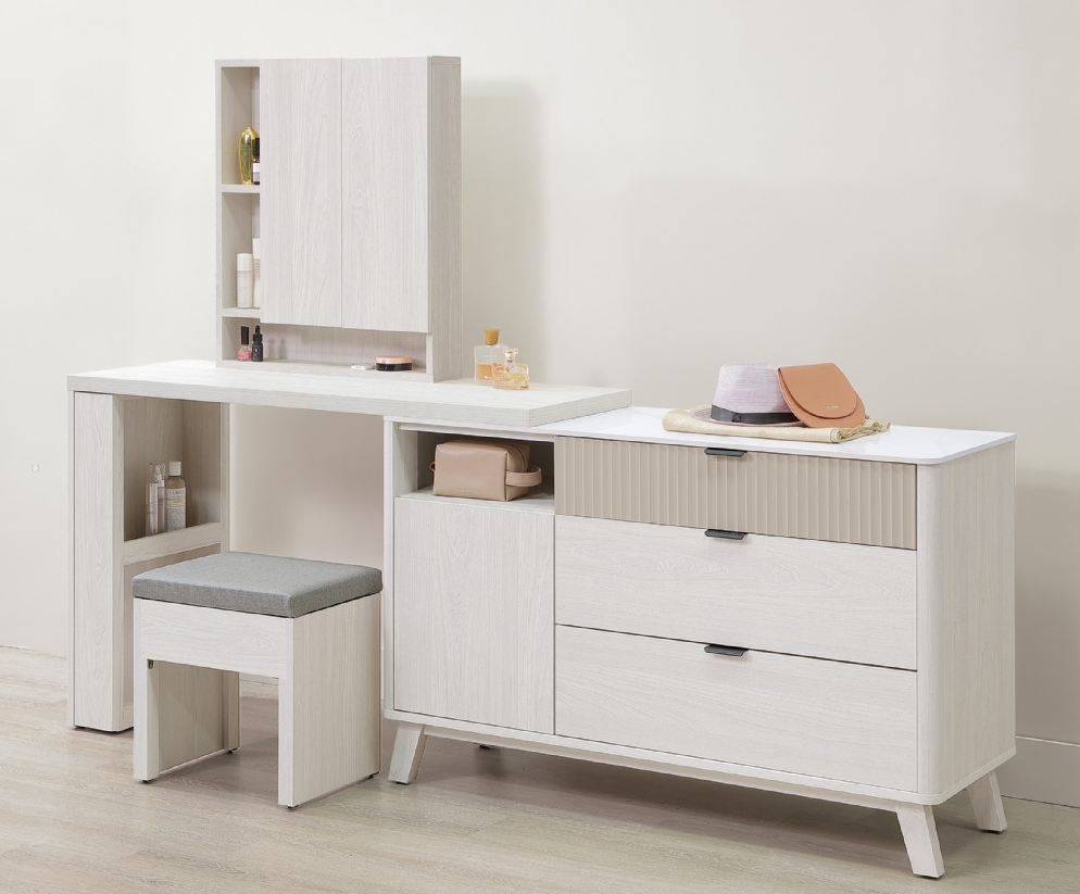 A56-03 索菲亞4尺岩板功能伸縮鏡台 含椅 可L型或一字型排列使用$18200