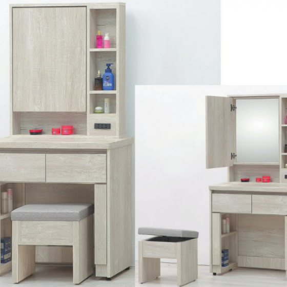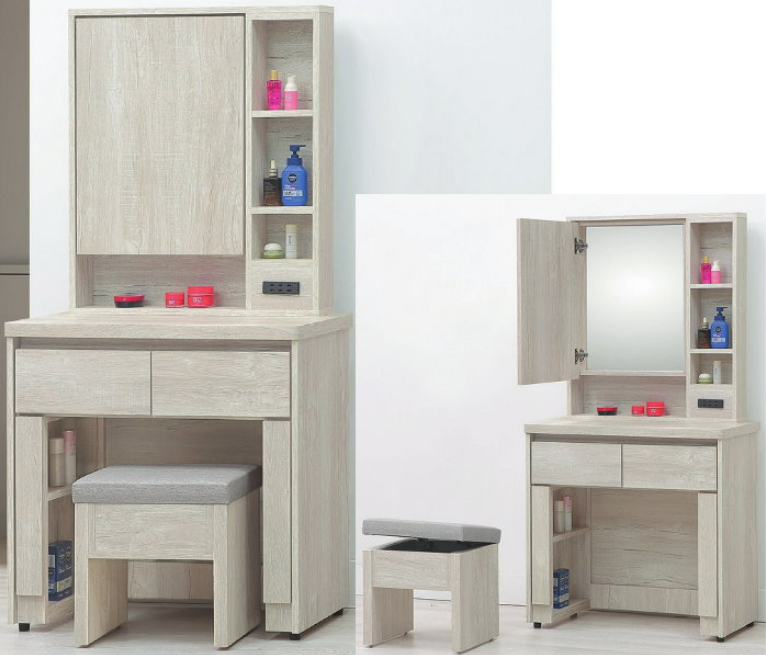 E19-14 鄉村白榆木2.7尺鏡台+椅 附插座$7900