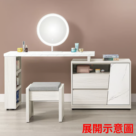 270-2 蘿拉4尺多功能組合鏡台 全組含椅 (不分左右方向) (收納櫃門內附1片活動隔板)(仿大理石紋美耐皿桌面)$12300