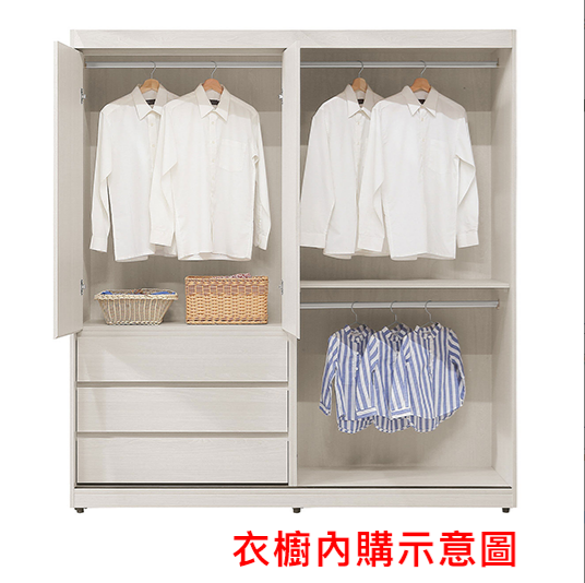 279-4蘿拉6*6.5尺推門衣櫃(無燈) 本衣櫃可另加180度拉門式內鏡$23200