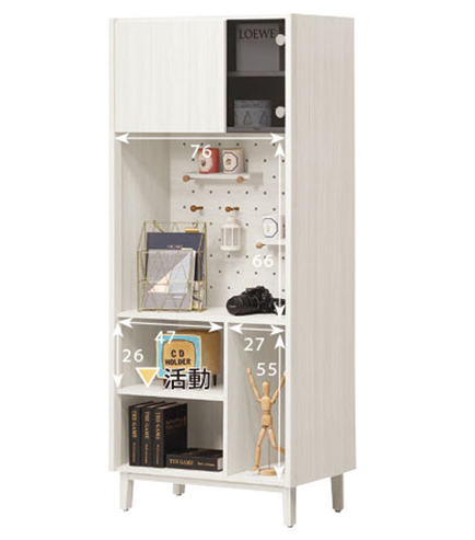588-8 蓁妮2.7*6尺收納櫃(附1大1小活動隔板) (洞洞板附2片小隔板+4支長木棍+3支短木棍配件)$9700
