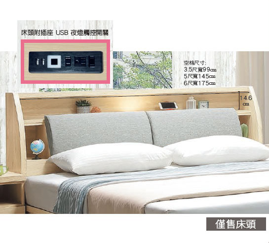 E41-1 莉維亞5尺USB夜燈床箱$6700 E41-3 莉維亞6尺USB夜燈床箱$7700