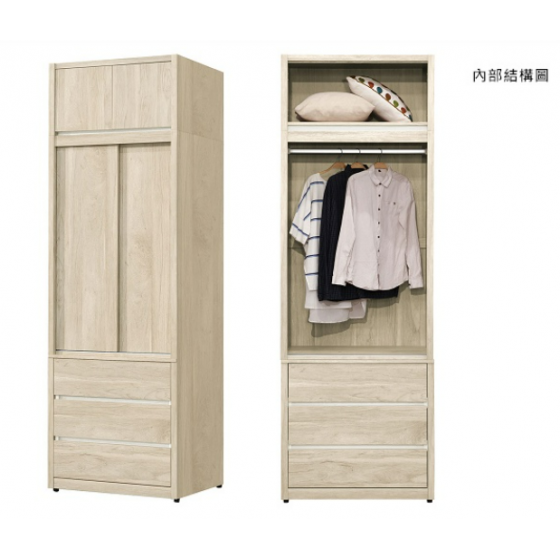 056-2 艾琳4*7.8尺推門衣櫃$19700 056-3 艾琳1.5*7.8尺開放衣櫃$6300 056-4 艾琳2.65*7.8尺雙吊衣櫃$12800 056-5 艾琳2.65*7.8尺三抽衣櫃$13500