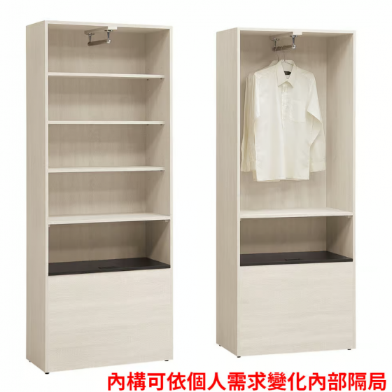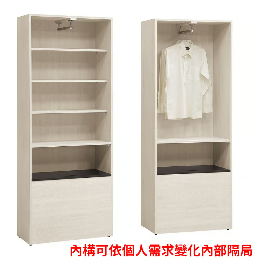 322-2 伊凡卡2.5尺自調式衣櫃 (附1支吊桿.3片活動隔板) (下層黑色隔板可掀開,內有收納空間)$9000