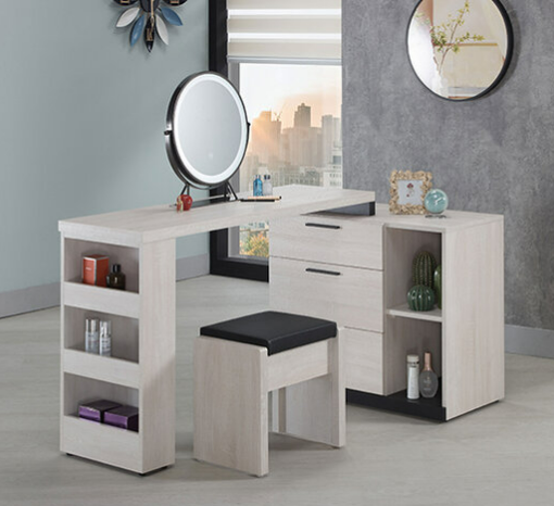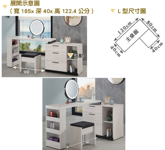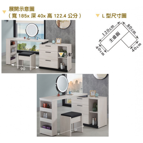 327-3 伊凡卡4尺伸縮鏡台 含椅 ⊙不分左右可隨意放置、 ⊙附桌上鏡×1、置物櫃尺寸:寬80深40高68公分$10900