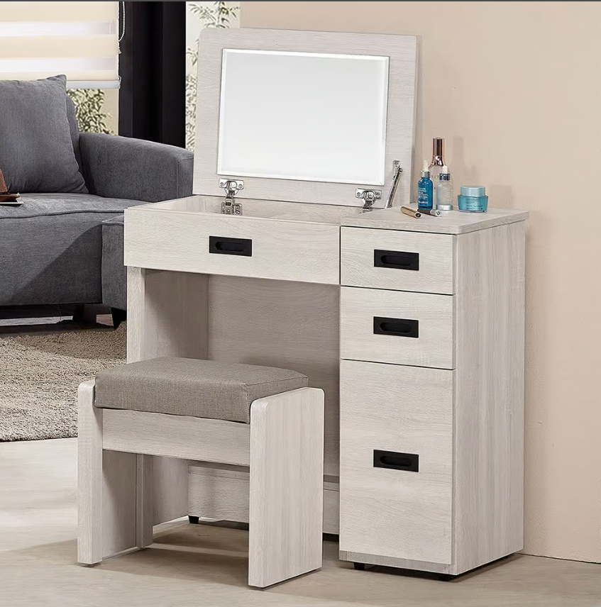 334-2卡亞白梧桐色2.7尺掀式鏡台 含椅$5800