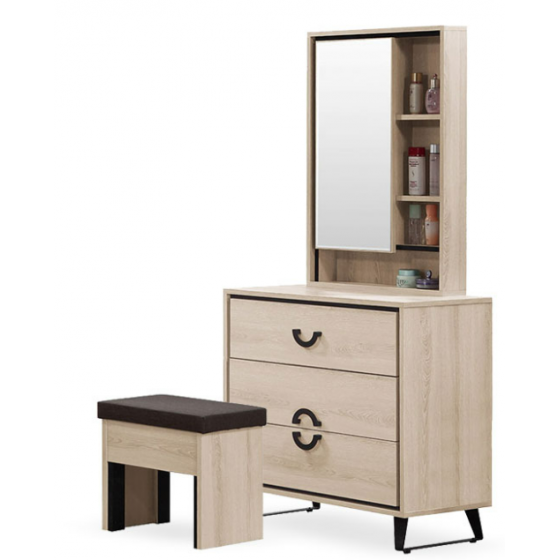 068-2 萊斯2.65尺三抽鏡台(含椅)(鏡座高度82公分.上座鏡門內附2片活動隔板)$7200 068-3 萊斯化粧椅(貓抓皮)(可掀開置物)$1100 070-4 萊斯2尺開門鏡台(含椅) (鏡座高度75公分 上座鏡門內附2片活動隔板)$5200