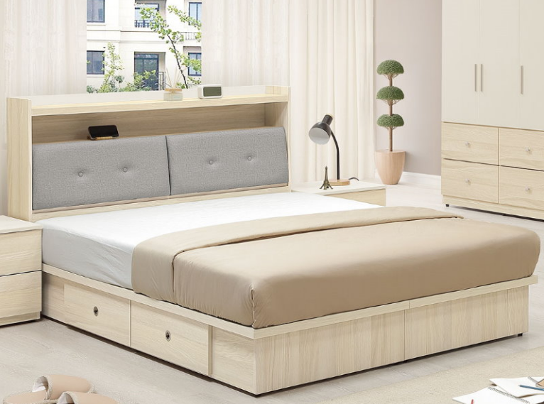 383-2 喬伊白橡木5尺床頭箱 (下緣高度50cm.可收納)$7100