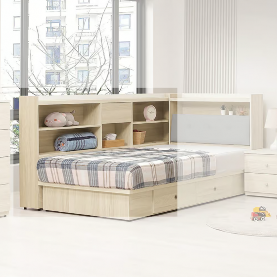 385-5 喬伊白橡木7尺床邊櫃(下緣高度50cm.可掀開置物)$8400