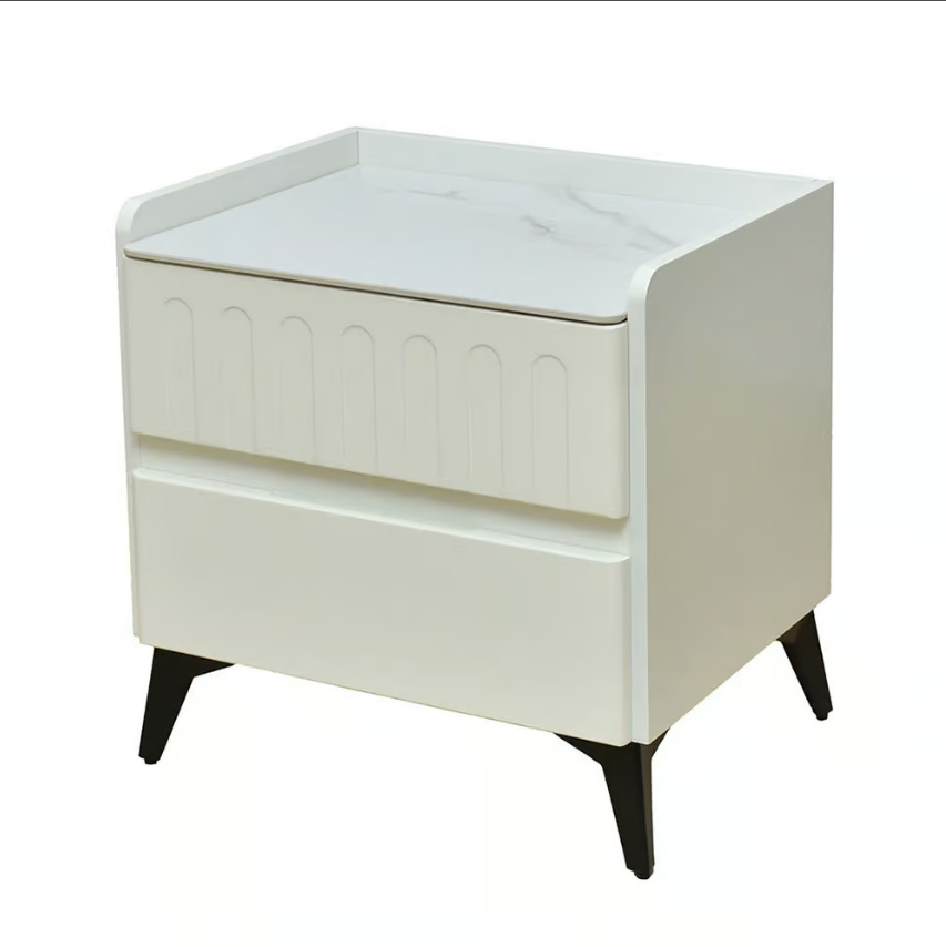 410-4 布萊頓岩板床頭櫃 6mm亮面岩板+高級MDF+11cm防鏽烤漆黑鐵腳 (抽屜採高級鋼珠滑軌)(塗裝採PU平光烤漆)$2400