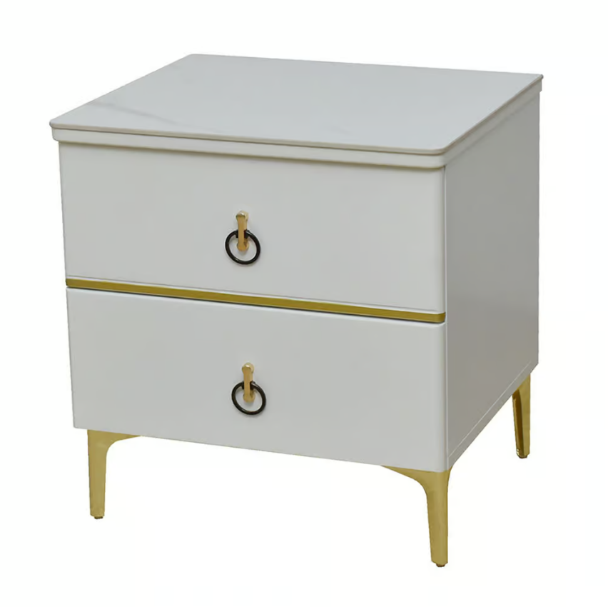 409-14 塔巴德岩板床頭櫃 6mm亮面岩板+高級MDF+11cm防鏽烤金漆鐵腳 (抽屜採高級鋼珠滑軌)(塗裝採PU平光烤漆)$2400