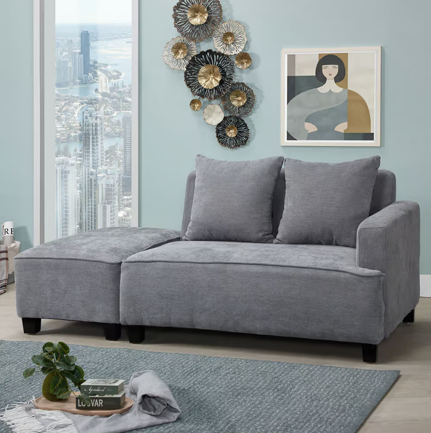 521-3 摩娜灰色貓抓布沙發 全組 左向 (二人座+非收納型腳椅.恕不拆賣) (二人座坐寬98.量至背枕處坐深46cm.坐高38cm) (附2個背枕)$10300