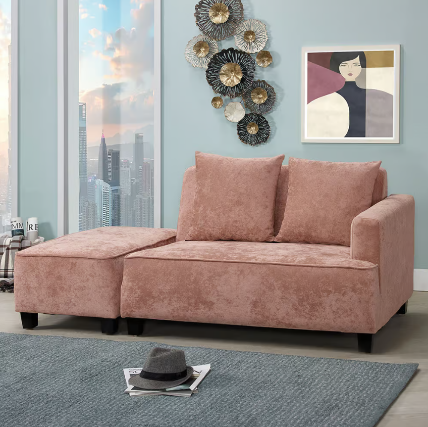 522-3 摩娜粉色貓抓布沙發 全組 左向(二人座+非收納型腳椅.恕不拆賣) (二人座坐寬98.量至背枕處坐深46cm.坐高38cm) (附2個背枕)$10300