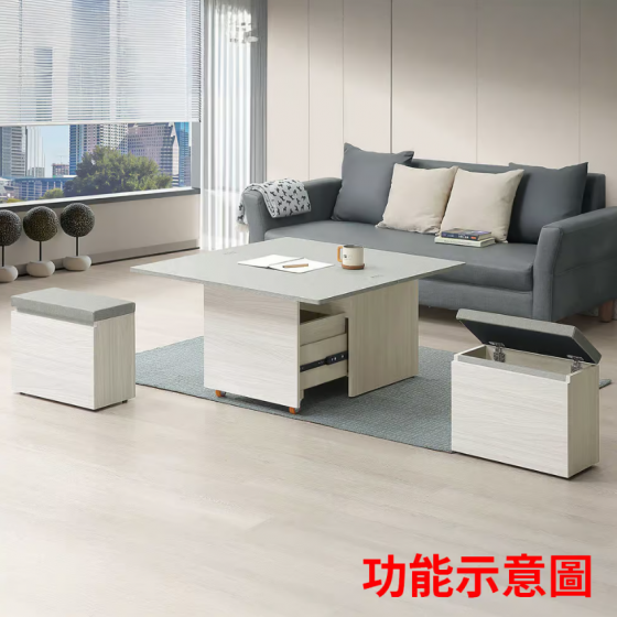 533-2 黛拉3.3尺雙升降大茶几 (附2張可置物輔助椅.附2顆活動輪) (輔助椅尺寸:寬24x深48x高42cm) (油壓升降五金)$11900