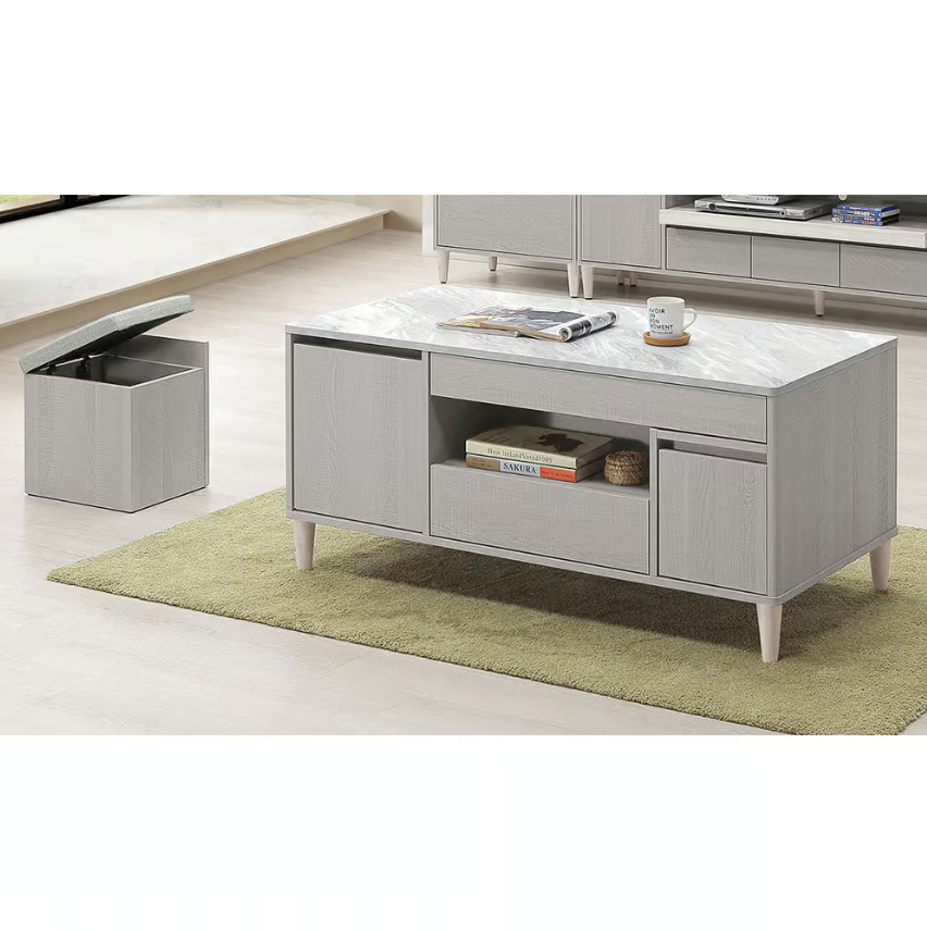 542-4 泰拉4尺四抽二門大茶几 含腳椅*2 (腳椅坐墊為貓抓皮) (腳椅尺寸:寬34x深29.4x高34cm)$10000