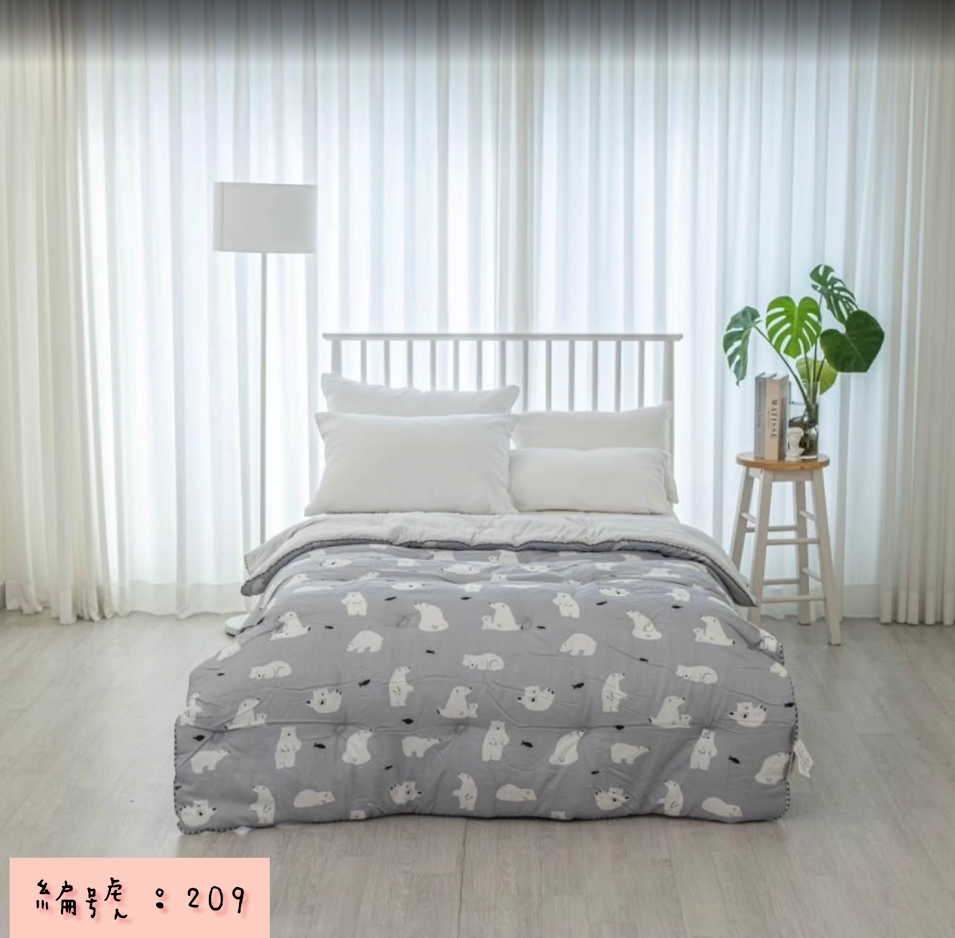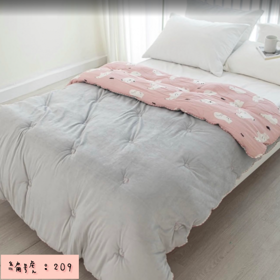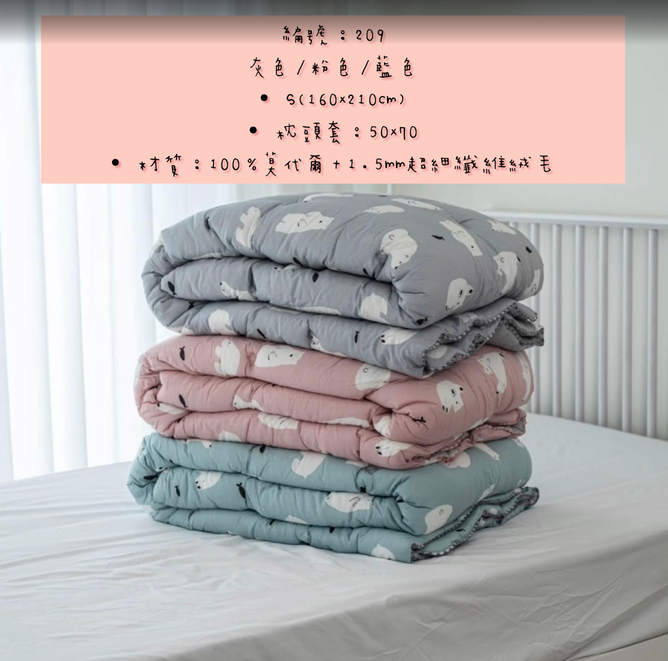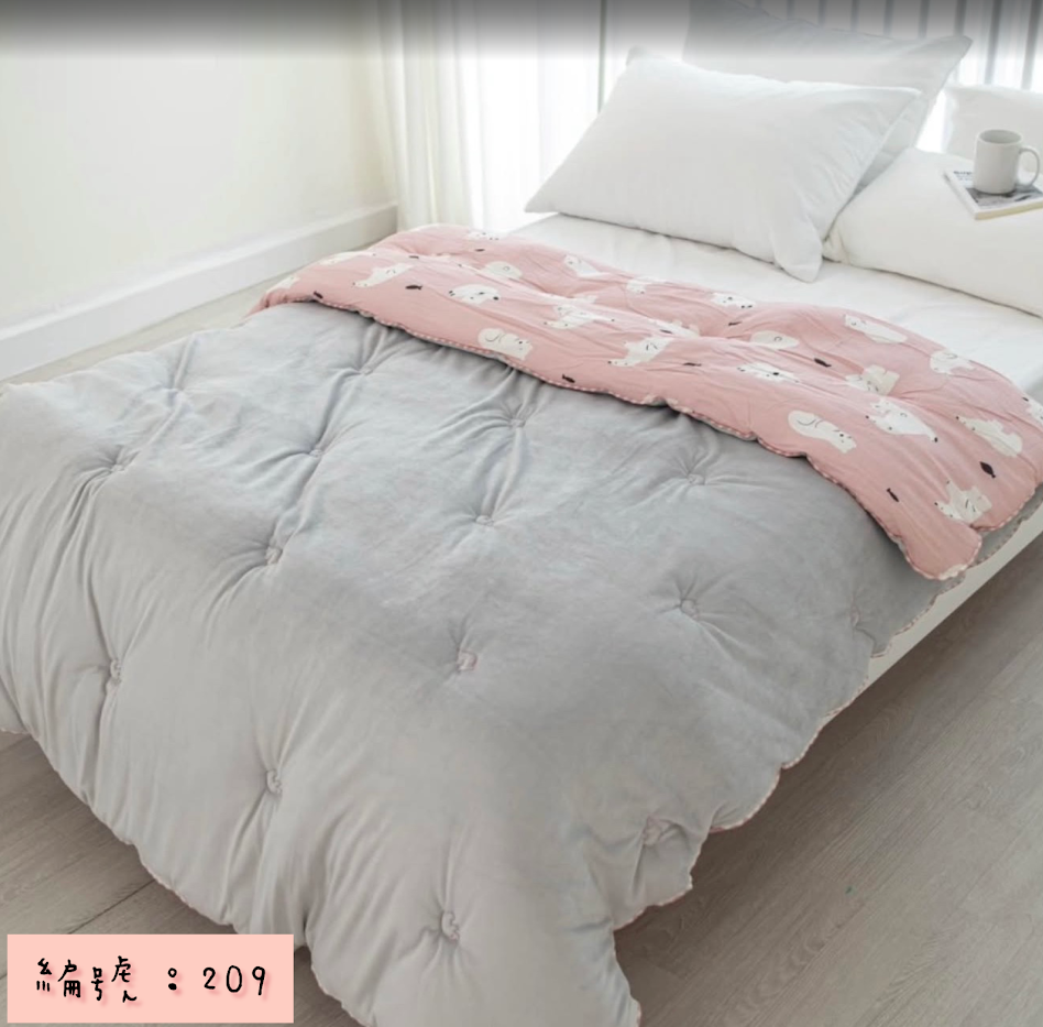 編號:209韓國棉被 顏色:灰/粉/藍 尺寸:S160*210公分 枕頭套50*70公分 材質:100%ai4294-3+1.5MM超細纖維絨毛