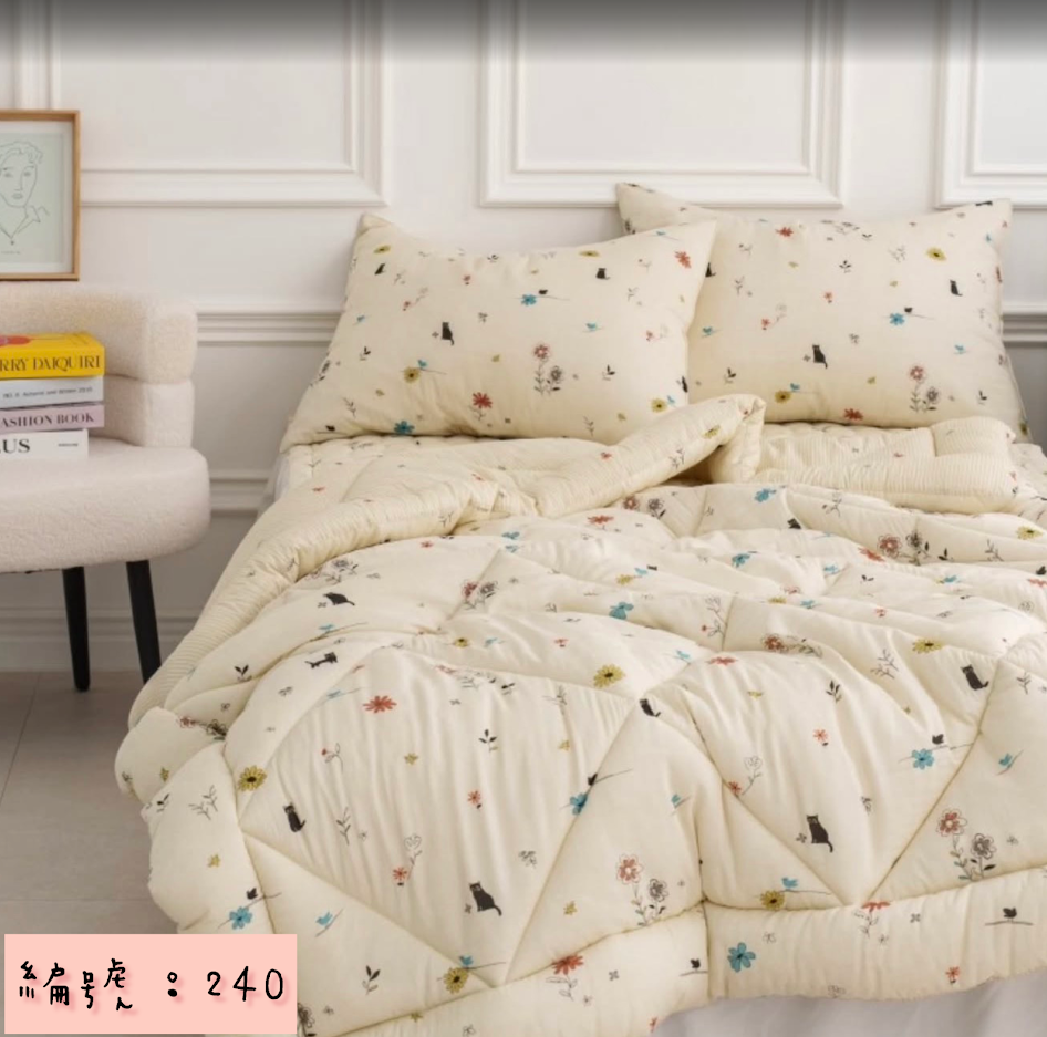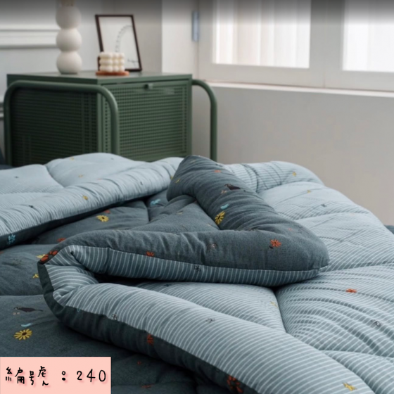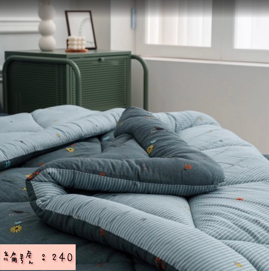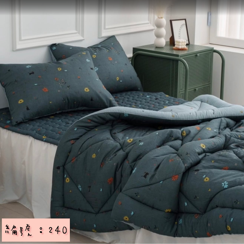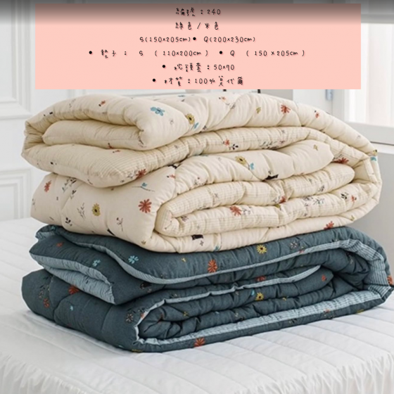 編號:240 韓國棉被 顏色綠/米色 尺寸S:150*205公分 Q:200*230公分 墊子:S110*200公分 Q:150*205公分 枕頭套:50*70公分 材質:100%莫代爾