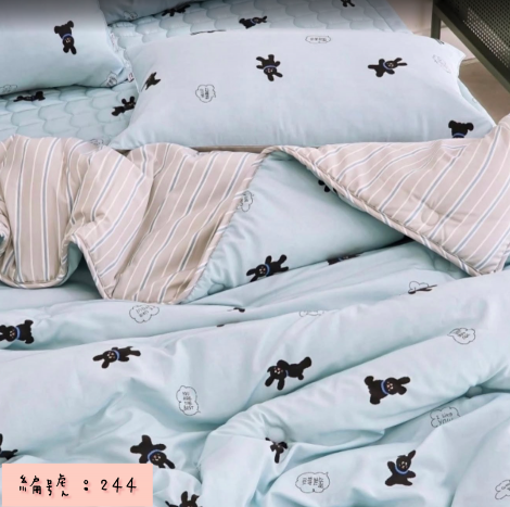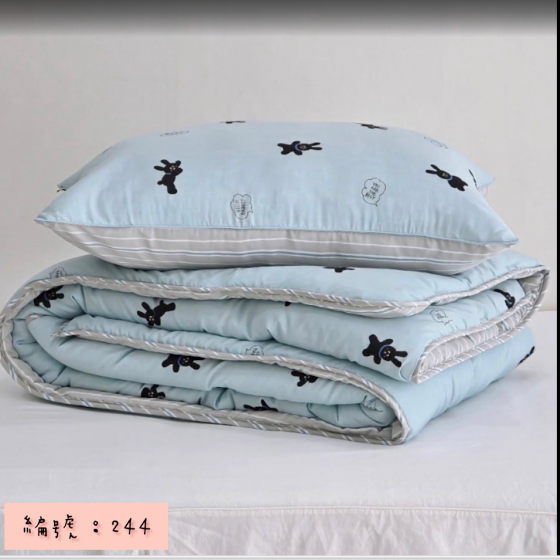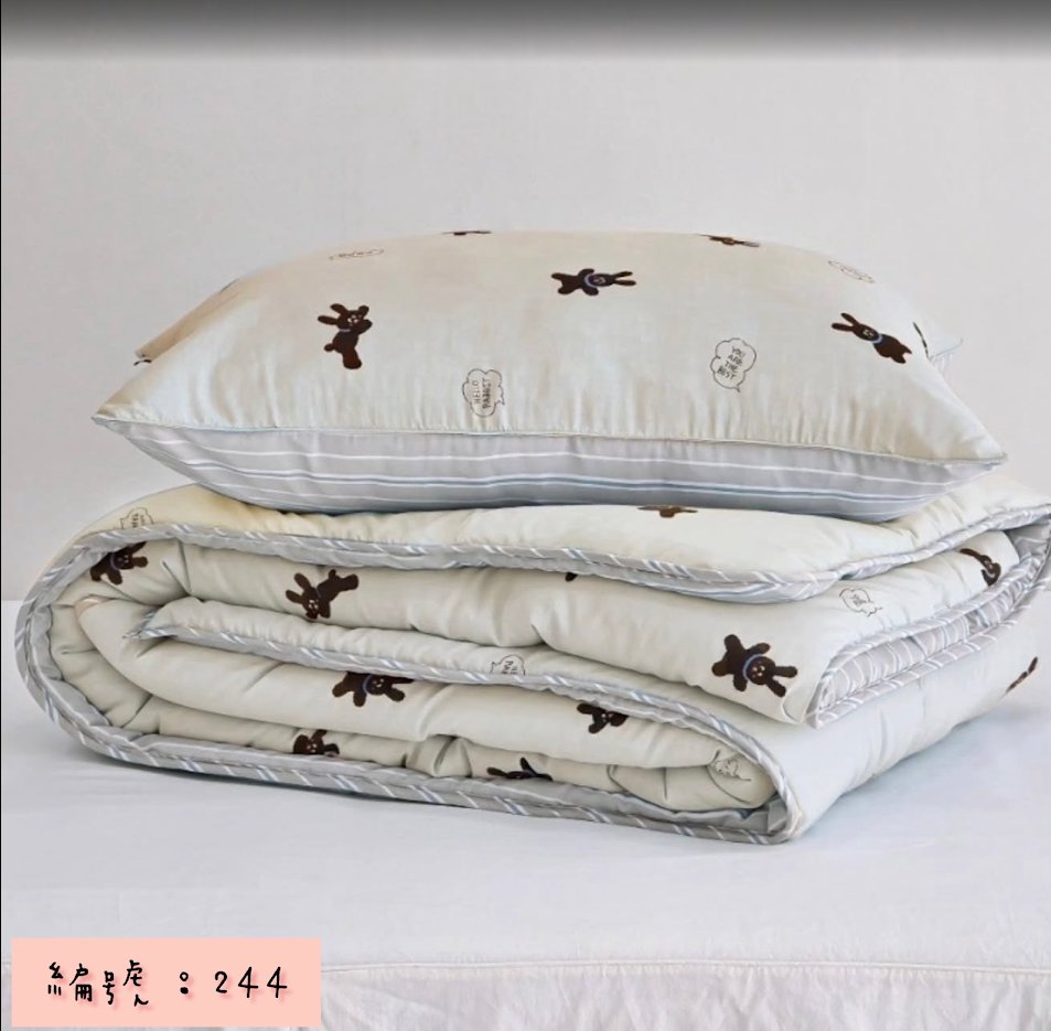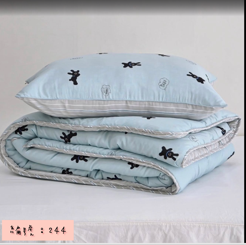 編號:244 韓國被 顏色:粉/藍/米色 尺寸:150*205公分 墊子:S110*205公分 枕頭套:50*70公分 材質:100%莫代爾