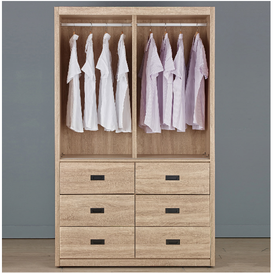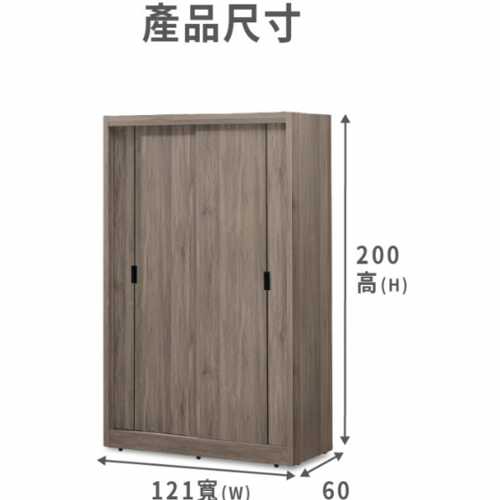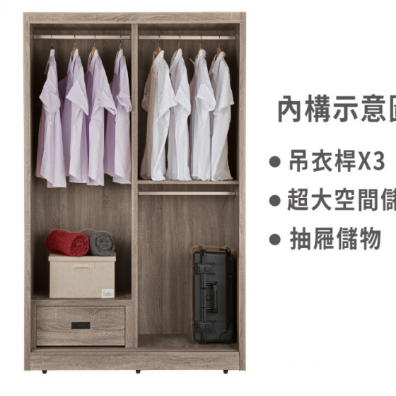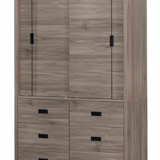 094-2 拉比灰橡4尺六抽推門衣櫃(上桶左右無相同)$12100 096-2 拉比灰橡4尺推門衣櫃 本衣櫃可另加180度拉門式內鏡$9400