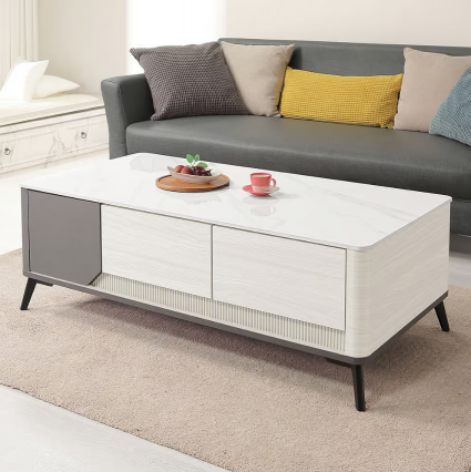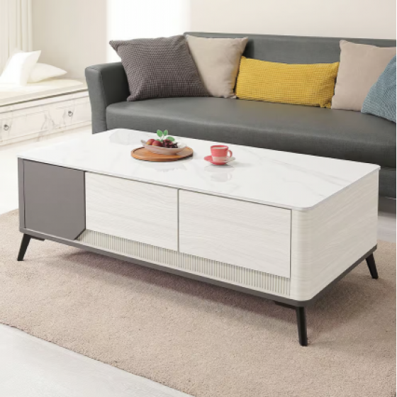 549-3 柏頓4尺二門四抽雪山岩板大茶几(抽屜雙邊造型.雙邊使用)1.2cm 亮面岩板不可訂做$9500