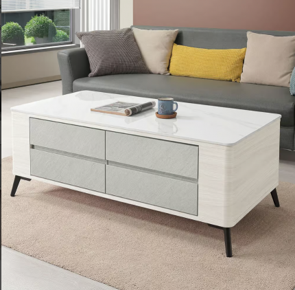 550-3 黛拉4尺四抽雪山岩板大茶几(抽屜雙邊造型.雙邊使用)1.2cm 亮面岩板$9300