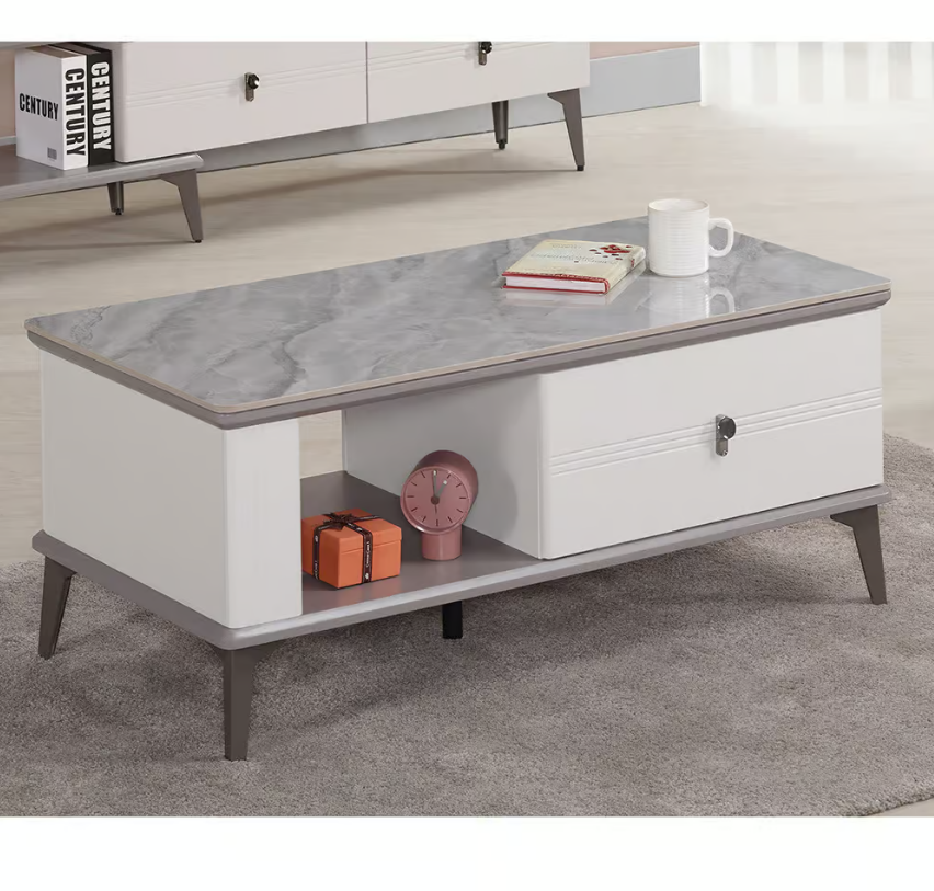 552-3 歆品3.3尺二抽岩板大茶几 (兩面單抽皆可開)$3900