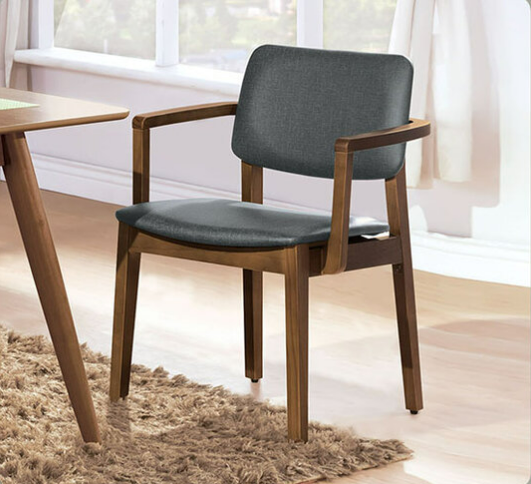A524-03莫德淺胡桃雙扶手亞麻皮餐椅(藍灰皮)$3700