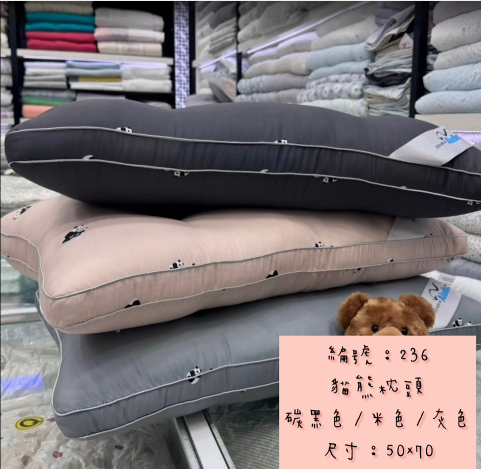 編號:236熊貓枕頭 顏色:碳黑/米/粉色 尺寸:50*70