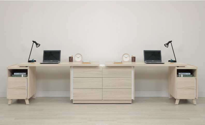 A555-02 萊米克10尺雙人書桌組 300~420公分伸縮$25000