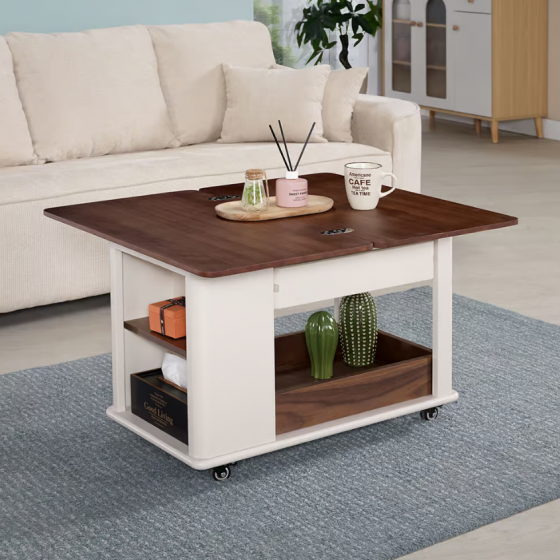 577-4 霍華白色折疊茶几 (單抽雙面開.附4顆煞車輪)$7600