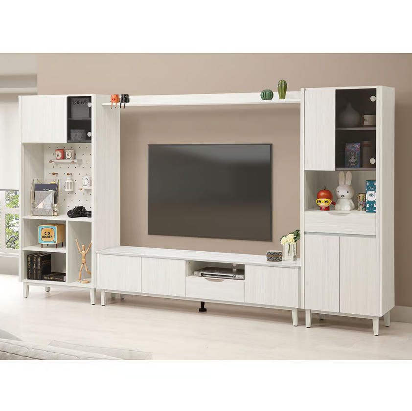 587-2 蓁妮10.5尺組合電視櫃 全組 (2.7尺收納櫃+6尺電視櫃+6尺天板+2尺收納櫃)$27600