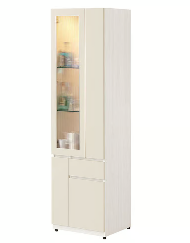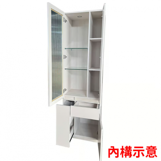 600-5 燕麥2尺展示櫃 (附2片8mm活動玻璃隔板.2片活動木隔板) (附線上開關LED燈)(上面左開門為5mm長虹玻璃)$9700