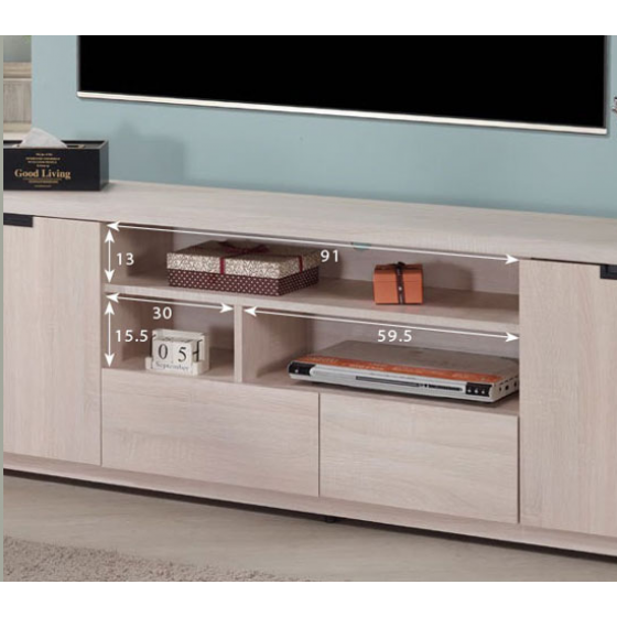 619-2 卡亞白梧桐色6尺電視櫃 附*1電視孔 左右開門內各附*1活動隔板$6200