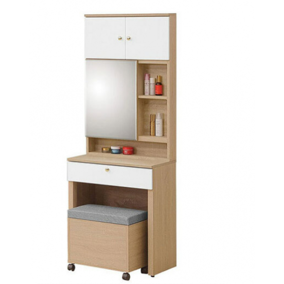 136-3 歐若拉2尺鏡台(含椅)(鏡座高度77公分.木門內無隔板.鏡框附1大1小活動隔板)$8600 136-4 歐若拉活動化粧椅(可掀開置物)$1500