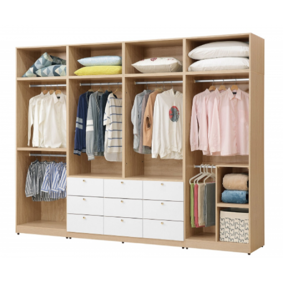 136-2 歐若拉10*7.8尺組合衣櫃(全組)(2.5*7.8尺雙吊衣櫃+5*7.8尺九抽衣櫃+2.5*7.8尺雙門衣櫃)$54800
