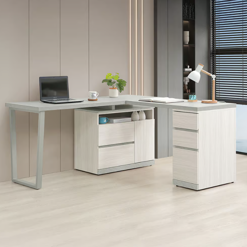 703-2 黛拉5.3尺多功能組合書桌 全組 (L型適合當個人工作桌使用) (收納櫃門內附1片活動隔板)$15100