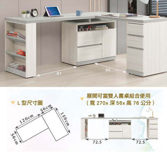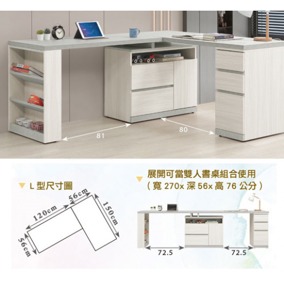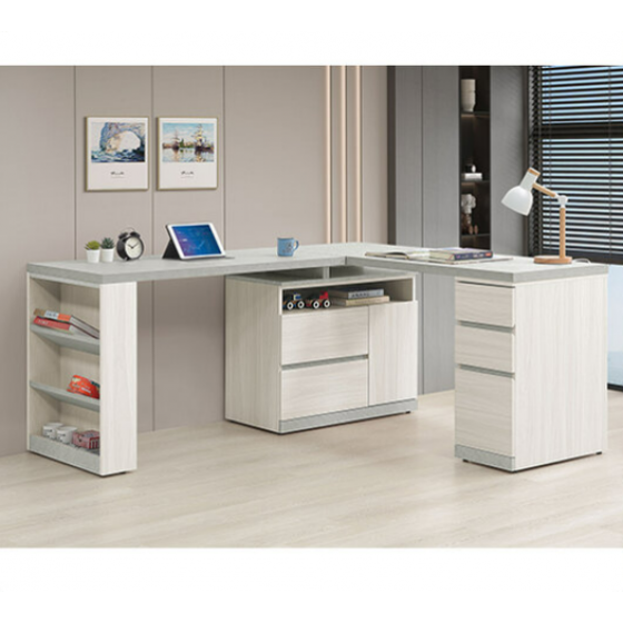 703-3 黛拉5.8尺多功能組合書桌 全組 ⊙L型適合當個人工作桌使用、 ⊙收納櫃門內附1片活動隔板$15300