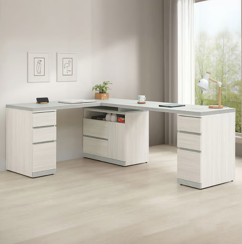 703-4 黛拉6.8尺多功能組合書桌全組 (L型適合2人使用) (收納櫃門內附1片活動隔板)$18000