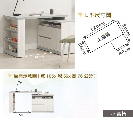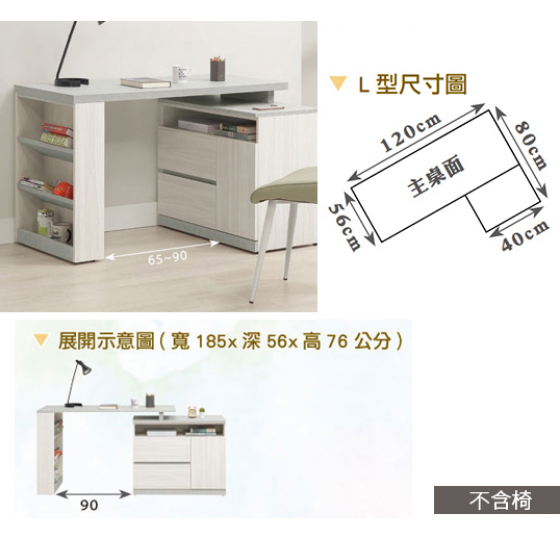 704-3 黛拉4尺組合書桌 全組 ⊙不分左右方向、 ⊙不含椅、 ⊙一門收納櫃門內附1片活動隔板$8900