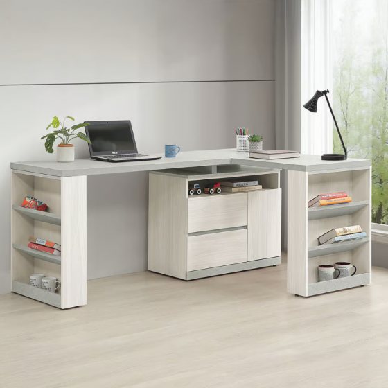 703-5 黛拉5.8尺多功能組合書桌 全組 (L型適合當個人工作桌使用) (收納櫃門內附1片活動隔板)$12500