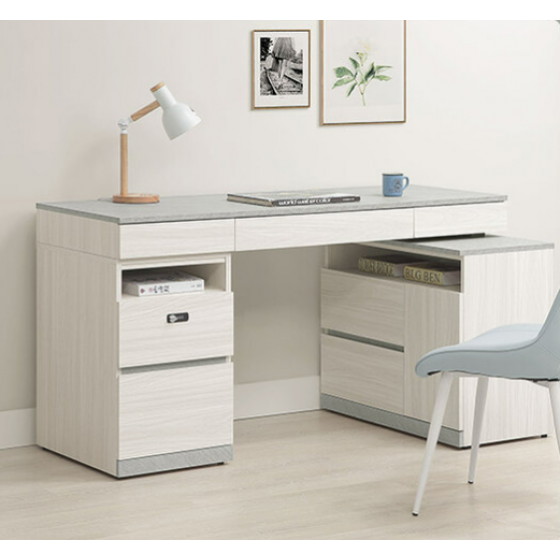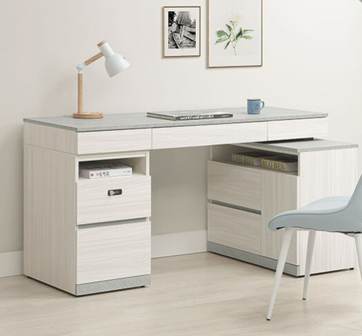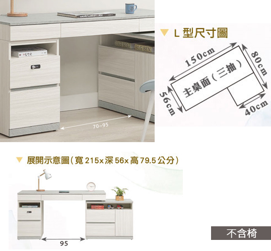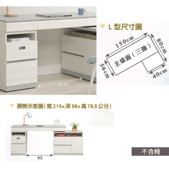 705-3 黛拉5尺組合書桌 全組 ⊙不分左右方向、 ⊙不含椅、 ⊙收納櫃門內附1片活動隔板、 ⊙二抽櫃抽屜採用密碼鎖設計、$14700