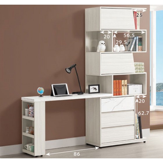 710-3 蘿拉4尺組合書桌櫃 抽左 全組 ⊙書桌面尺寸:120×40cm、 ⊙雜誌架不分方向$12700