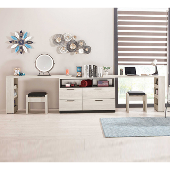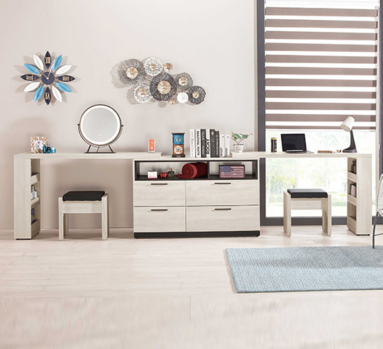 719-2 伊凡卡11.7尺多功能組合書桌 全組 含椅 ⊙雜誌架不分左右方向、附桌上鏡*1$17200
