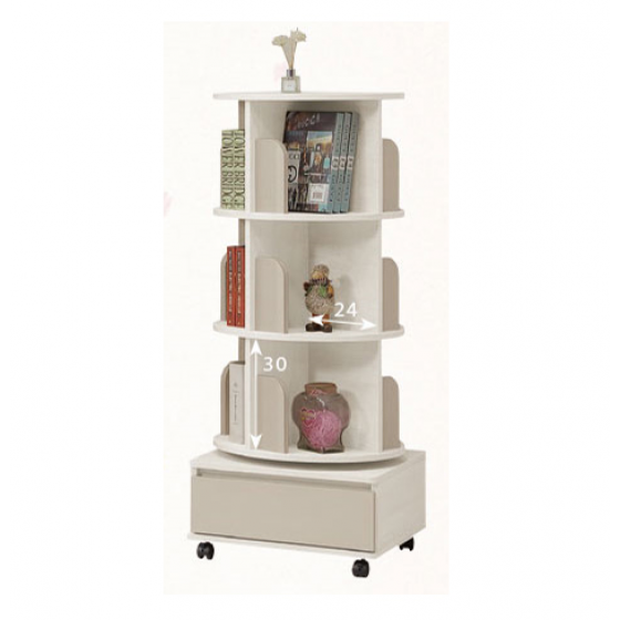 734-4 蕾佳娜1.65*4.17尺旋轉書櫃 大 ⊙360度旋轉.四面收納設計、 ⊙底座抽屜與小圓角收邊設計.附4顆可固輪$7200