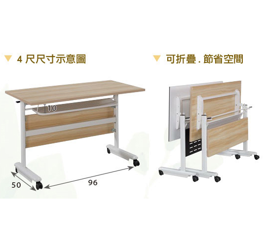 767-2 吉達4尺原木色摺疊會議桌 ⊙附4顆煞車輪$2600 767-4 吉達4尺胡桃色摺疊會議桌 ⊙附4顆煞車輪、$2600 767-6 吉達4尺白色摺疊會議桌 (附4顆煞車輪)$2600