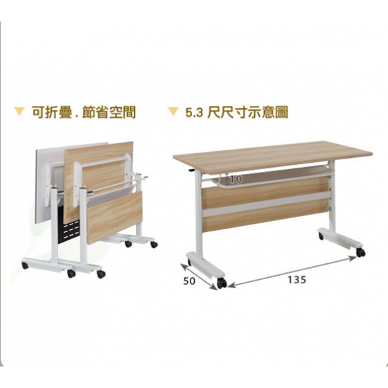 767-3 吉達5.3尺原木色摺疊會議桌⊙附4顆煞車輪$3600 767-5 吉達5.3尺胡桃色摺疊會議桌 (附4顆煞車輪)$3600 767-8 吉達5.3尺白色摺疊會議桌 (附4顆煞車輪)$3600