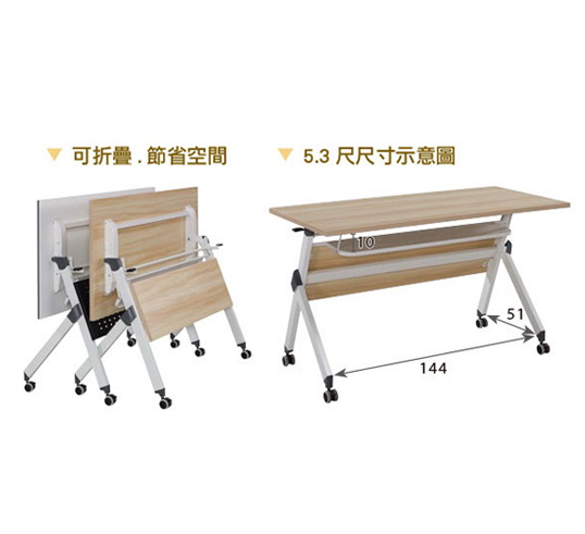 768-3 柏悅5.3尺白色摺疊會議桌 ⊙附4顆煞車輪$3800 768-5 柏悅5.3尺胡桃色摺疊會議桌 (附4顆煞車輪)$3800 768-8 柏悅5.3尺原木色摺疊會議桌 ⊙附4顆煞車輪$3800