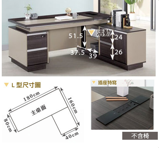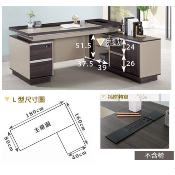 771-2 威爾汀6尺辦公桌 全組 左向 ⊙桌面附插座、 ⊙長櫃及短櫃各1個抽屜附密碼鎖、 ⊙長櫃附有出線孔.開門內無隔板$12700